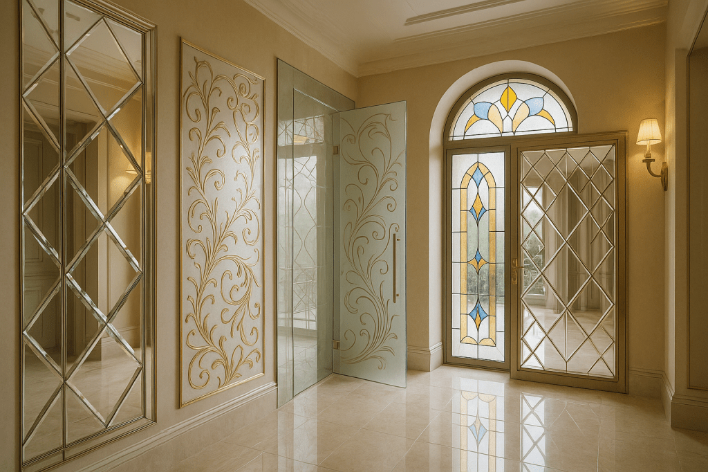 Brilliance and refinement in every detail. Discover the timeless elegance of glass and mirror artwork, created especially for luxury homes. Each piece is handcrafted with meticulous attention to detail, combining craftsmanship with contemporary design. From decorative walls and etched glass doors to unique mirrors with artistic inserts, our collection transforms any space into a work of art.
