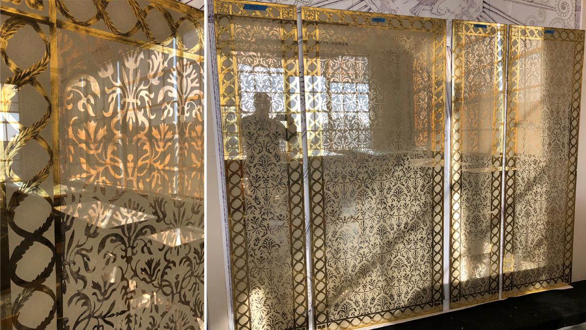 Eglomisé, Églomisé or Gilding glass is a technique characteristic of silvering, gilding and reverse painting on glass. The technique is always applied to the back of the glass in reverse. Silvering, gilding and painting on the back of glass has a long history, with examples dating back over 2000 years.